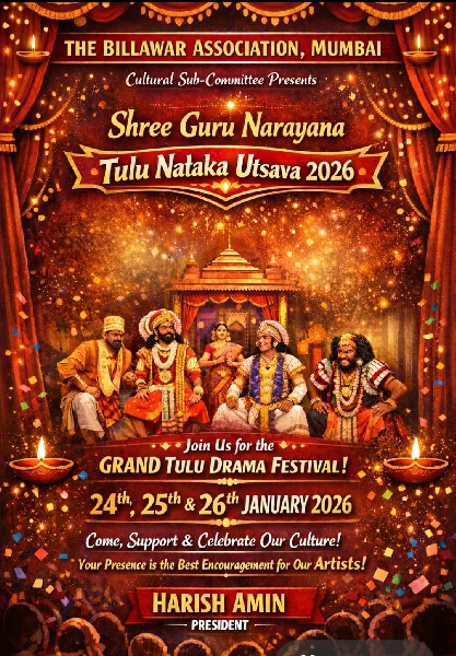 The Cultural Sub-Committee proudly presents Shree Guru Narayana Tulu Nataka Utsava 2026 is organised under the inspiring leadership of Sri Navin Padu Inna (Chairman) and Sri G. K. Kenchagere (Secretary), along with their committed and enthusiastic team.
