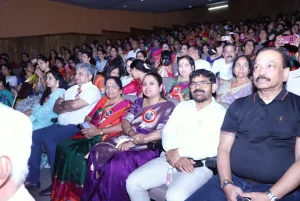 The programme commenced with the garlanding of Shri Guru’s portrait on the ground floor, followed by the traditional lighting of the ceremonial lamp in the auditorium by the Association President Shri Harish G. Amin along with other dignitaries. The function was presided over by President Harish G. Amin, accompanied by his wife Smt. Momitha Harish Amin.